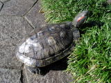 2010年10月11日 わが家のカンちゃんたち秋晴れに「お散歩」 意外とゆっくり秋の日を楽しんでいるようです♪ 「ミシシッピーアカミミガメ」在来種を脅かす存在として最近仲間たちがTVに登場していますが 生活環境で性格も変わってくるのかもしれません。 のんびり穏やかなカンちゃんたち♪ |