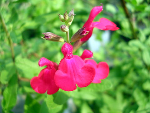大好きなばら色が美しいチェリーセージ・他に花色も大変豊富です。 成長すると木質化してとても頑強です。草丈も60cm前後になるので生垣にもgood! 花の時期も長く、防虫効果もあり、周りの植物たちを元気にしてくれます。