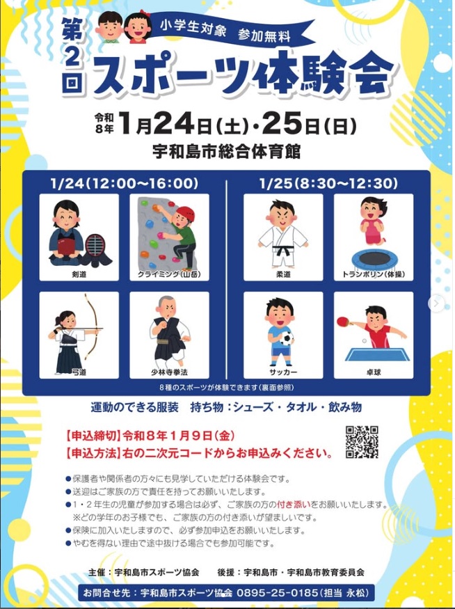 1月24(土)・25(日)スポーツ体験会 宇和島市総合体育館