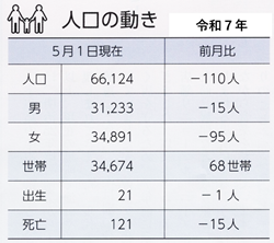 右の表は6月の市広報に出ていた「人口の動き」であり、実際は4月の動きである。