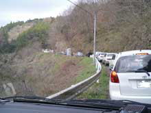 今日は、落合町の方へ醍醐桜を見に行きました! 醍醐桜は樹齢1000年を超えると言う大きなサクラで、 以前放送された「大河ドラマ」のロケ地でも有名になった場所です。 取り合えず、家を10時前に出発!チョット雲が多いのが気になりました。 高速道路を一時間ほど行ったところ、目的地手前のサービスエリアで休憩、 車を止めて、ふと隣の車を見ると「ラジ丸(山陽放送のラジオ中継車)」が 停まっていました! 「アナがおるんか、アナが」と思いつつ、 あたりを見渡すも、発見できず・・・。(チョットガッカリ) トイレに行ってる間に、ラジ丸の姿も消えていました! 気を取り直して、目的地に再出発! インターを降り、しばらく行くと川べりに桜並木が、 その木の下で、弁当を食べてる人が居た。 更にしばらく行くと、段々街から離れて、それらしい感じになってきました。 とにかく「道が細い!」そして、渋滞が始まった!! 平日だからと、のんきに出てきたが、大渋滞! この時の時間、大体11時30分ぐらいでした。 あまりに暇なんで、携帯のウェブでも見ようと思ったら「圏外!」電波無し・・ 取り合えず、車の中から写真撮影を開始! あと1キロチョットのところで、何人か歩き始めたので、 一緒に来ていた、うちの親父も先に歩いていってしまいました・・・。 テレビも映らないし「暇や〜ひまや〜」 周りを見渡すと、杉の木が・・・・花粉症の人には「堪らんでしょうな〜」 と、思いつつ渋滞に並ぶ事一時間チョット! やっと「醍醐桜」が見えてきました! 第一印象は「ショボ・・・チッチャイ」・・・(ゴメンナサイ) ま〜離れた道の上で車の中から見たもんで・・・・・ 車を駐車場に入れ(料金500円・時間制限無し)いいよ桜の元へ! 「お〜ヤッパいいわ!」やはり、車の中で見るより立派に見える! 近くに行けば、かなり大きい桜の木です。 大きくなりすぎて、所々補強が入ってました(チョットガッカリ)。 それにしても人の多い事!平日だと言うのに! とにかく、写真撮影を開始!! ん〜カメラマンの多い事、今流行り(付いてて当たり前?)カメラつき携帯、 お手軽デジカメ、そして本格的な一眼レフまで、み〜んな桜を狙ってます! 中でも極めつけは、一眼レフを3台も首にぶら下げてるお兄ちゃん!! レンズを換えるのが面倒なのか、ハタマタ見せびらかせたいのか? 思わずひいちゃった☆きゃっ♪・・・・・・・・・・・・。 でも、「一眼欲しいな〜」と思った今日この頃です。 気を取り直して、撮影、撮影! ・・・・・・・・・・・・・・・・・・・・・・・・・・・・・・・・・・・・・・・・・・・・・・・・・・・・・・・・・・・・・ 撮影もひと段落、そろそろ帰ろうかと思ったそのとき! かなり離れた場所で(推定50メートル以上?)、 カメラつき携帯で桜を撮影している集団(3人ぐらいだけど・・・)を発見! その中に、ピンクのジャケットを着て、ひときわ目立つ女の人が! 「アンクミがおる〜!」(心の叫びです、けっして声には出してません(多分)) ※アンクミとは岡山放送の名物(?)アナウンサー、「安藤久美子さん」です。 岡山、香川の放送局では、知名度NO1(いろんな意味で)!(当方の勝手な憶測ですが・・・・) ヤッパ!テレビに出るような人は、どっか違うのか? 普通、50メートルも離れてたら気付かないと思うけど、って 隣のワイヤーの束を持ってる男の人が目立っていたのか!(笑) しばらく、美人アナウンサー?を堪能させていただきました。 出来れば、ニョッキンのロケで会いたかった! と、嬉しい余韻に浸っている所で、あることに気が付いた・・・・・。 「親父がいね〜〜!」まーた何所か行っちゃた・・・・・・。 取り合えず、入り口の所まで戻って、石垣の上に座った。これぞっ! 「迷子の鉄則!」目立つ所で、動かず待つ!(お子ちゃまかっ!(恥)) 待ってる間にも、いろんなことが起こるもので、 さっきのテレビ局の人たちが、中継の準備をしはじめた。 醍醐桜から200メートルばかしあろうか? ケーブルをひっぱて来ている!大変そうだ。(特に片付けるのは、もっと大変そう) 側溝の蓋を取ろうとしたり、 それが無理なので側溝の中にケーブルを通したり、 試行錯誤してました!でも結構楽しそう!あ〜ゆう仕事もいいかも! しばらくして、親父が戻ってきたので帰ることにした。 駐車場を出発し、最初の交差点で看板を発見! 「岩井畝の大桜」 「行き当たりバッ旅」を、心情とする自分にとっては、格好の獲物(?)! 帰り道と逆だが「行こう!」と言う事で、しゅっぱ〜つ! ・・・・・・・・・・結構近かった! 大きく、立派な桜の木ですが、チョットお客さんが少なく(この時は居なかった) 寂しかった・・・・。 取り合えず、写真撮影をし、家路に付いたのであった。 |