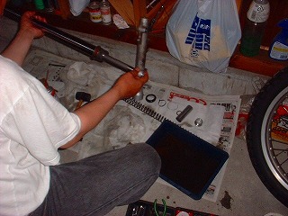 今までにフォークオイルは3回ほど交換していますがやはり今回も真っ黒に成っていました、もっとも他にとんでもないことを発見するのですが・・・・有るバーツのサイズ違いが新車から使われていた可能性が非常に高い(もちろん旋盤など無いですから工具屋で間に合わせを作りました)カラー一枚なんですけどね(大変重要なんです)是に付いてもその後の調査するも原因は断定できませんでした。