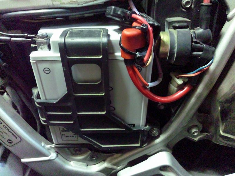 固定には純正の固定具が少しの工夫で使用できこの画像では解りにくいですが右下に見えるボルトを長めの物に変えて車体との間にカラーの代わりに8ミリ程度のナットをカラーの代わりにして固定しています(きちんと固定されていますよ)もちろんこの状態でサイドカバー取り付けたら干渉は有りませんがほぼ隙間は無いと思います(+の増設した配線の取り回しを変えたら干渉しますから)
