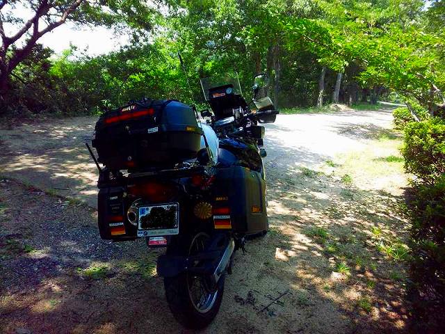 前から見ればこんな感じですがライトの横のケースは自作したカメラケースです、防水性の無い物だけに不意の雨など掛からないために自作しています、もちろんカメラのステーも市販品を切ったりはったりとして使っています。